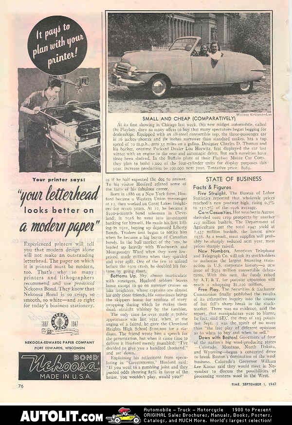 Various samples of articles of publicity regarding the original attempts to market the Playboy car.