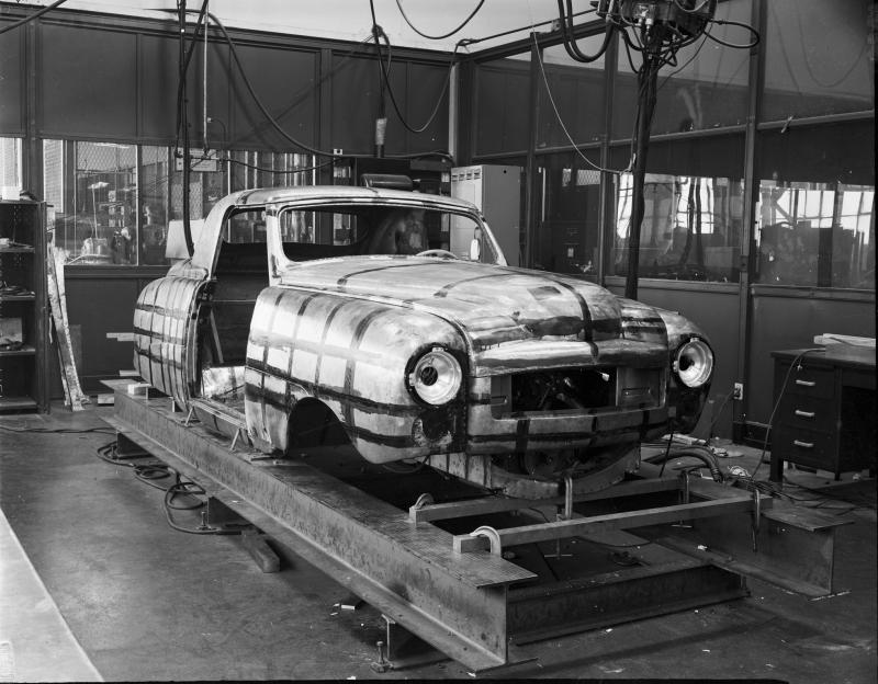 The 1949 Playboy production car. This car was the car that Playboy would have produced if they had made it into full production. In a letter that Louis Horwitz sent out to all Playboy associates on December 15, 1948, he stated that they had completed all the developmental work necessary to get the Playboy car into production. They had completed 94 cars in the pilot production run and were within sight of completing the production/engineering of the car. The manufacture of the dies to build the the 1949 Playboy production car are now under way.