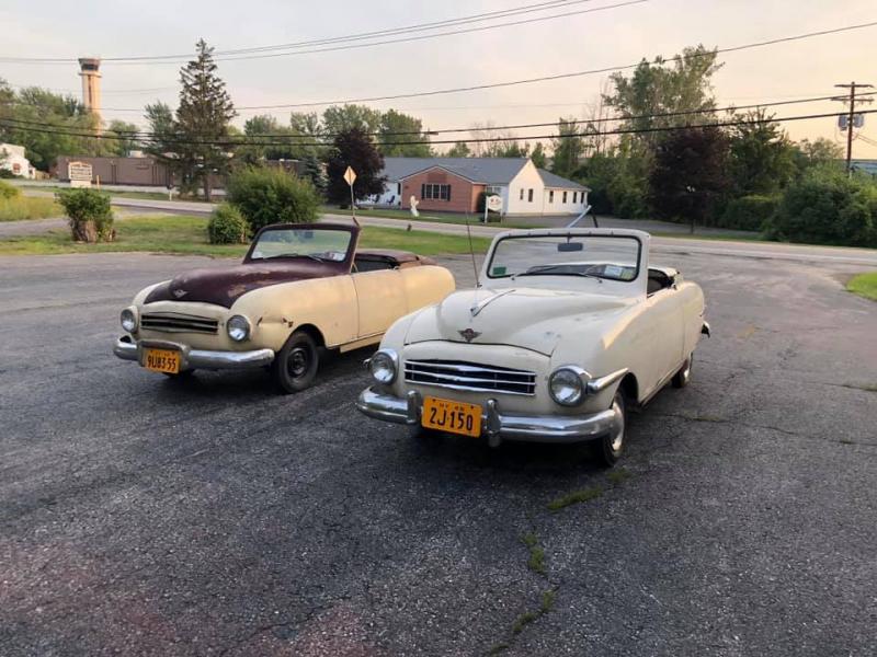 April 9, 2020 - Here is a current photo of Playboy #68 (cream color) and Playboy #92 (white) which are both unrestored running and driving cars. Great to see them out and about!