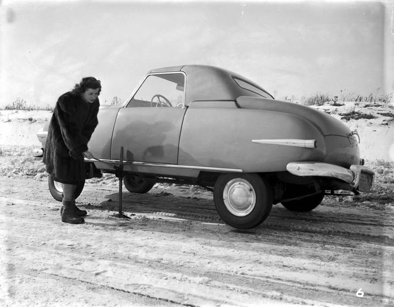 January 6, 2017 - Here's an awesome photo we are adding showing the wife of the founder Lou Horwitz demonstrating the use of the jack for the Playboy car:
