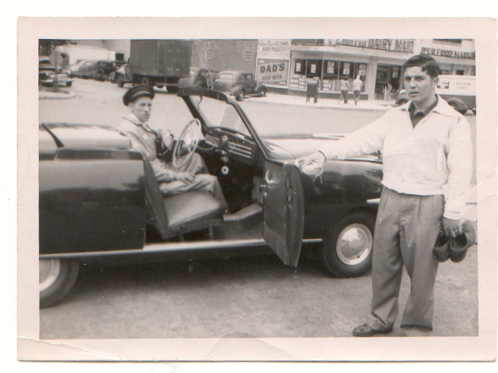 April 30, 2013/June 13, 2013 - This photo taken way back in 1960 is a little blurry, but I was fascinated to receive it because it shows the owner of car #34 standing next to his Playboy car while talking on a fake car phone. His friend is sitting in the car. What makes it so fascinating is that car #34 is the actual car that the Webmaster (me) of this site currently owns !!